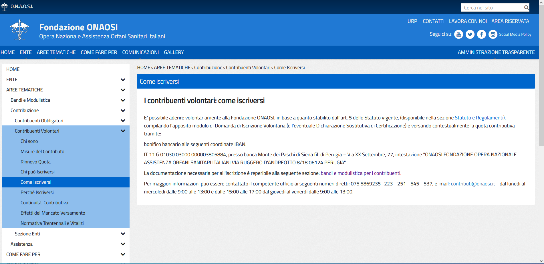 - Informazioni ONAOSI: document 5 ONAOSI(4.01 MB) - image 5 ONAOSI come iscriversi 2024(329 KB) - pdf 5 ONAOSI domanda di adesione volontaria 2024(230 KB) - document 5 Promemoria ai neolaureati su ONAOSI 2023(1.08 MB)